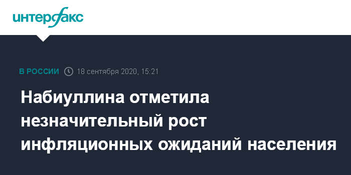 Москва. 18 сентября. INTERFAX.RU - Инфляционные ожидания населения стали более "заякоренными", в августе они повысились только на 1 процентный пункт (п.п.) к марту, сообщила председатель Банка России Эльвира Набиуллина на пресс-конференции после заседания совета директоров.