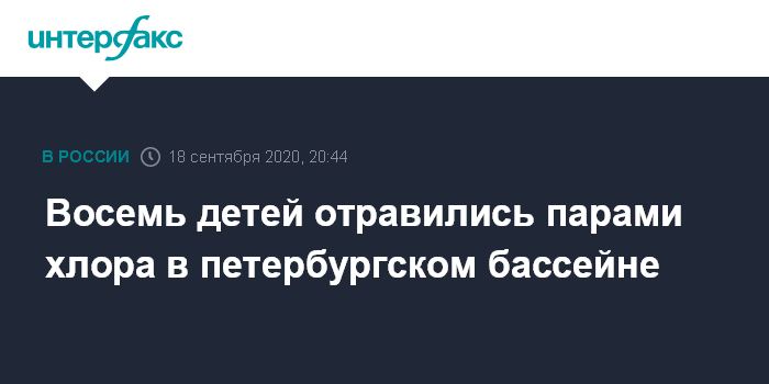 Москва. 18 сентября. INTERFAX.RU - Уголовное дело возбуждено в связи с отравлением восьмерых детей парами хлора после посещения бассейна в Петербурге.