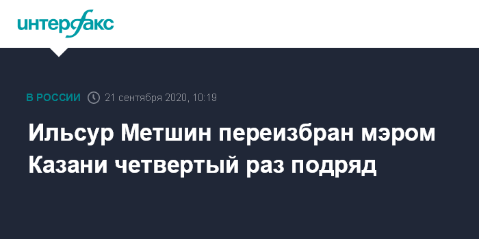 Москва. 21 сентября. INTERFAX.RU - Депутаты Казанской городской думы четвертого созыва на первом заседании избрали главу города - им стал выдвинутый от фракции "Единая Россия" Ильсур Метшин, ранее уже три срока подряд занимавший должность мэра столицы Татарстана, передал корреспондент "Интерфакса".
