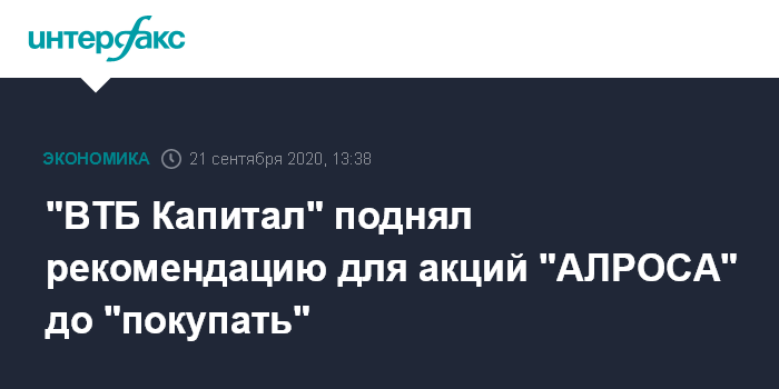 Москва. 21 сентября. INTERFAX.RU - "ВТБ Капитал" повысил прогнозную стоимость акций "АЛРОСА" с 72 рублей до 100 рублей за штуку, сообщается в обзоре инвестбанка.