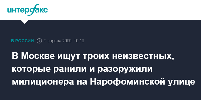 В Москве ищут троих неизвестных, которые ранили и разоружили милиционера на Нарофоминской улице