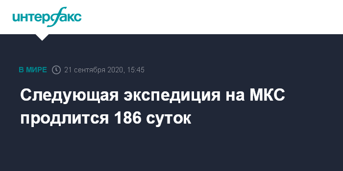 Следующая экспедиция на МКС продлится 186 суток