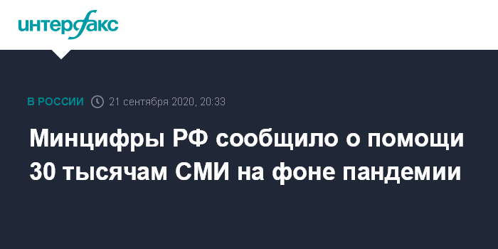 Минцифры РФ сообщило о помощи 30 тысячам СМИ на фоне пандемии