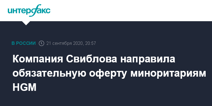 Компания Свиблова направила обязательную оферту миноритариям HGM