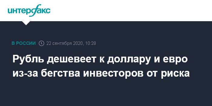 Как отмечают эксперты "Интерфакс-ЦЭА", рубль дешевеет к доллару и евро на фоне снижения интереса инвесторов к риску, вызванного беспокойством по поводу введения новых ограничительных мер из-за пандемии коронавируса и неопределенности перспектив экономического стимулирования.