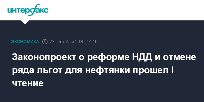 Законопроект о реформе НДД и отмене ряда льгот для нефтянки прошел I чтение