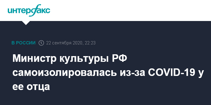 Министр культуры РФ самоизолировалась из-за COVID-19 у ее отца