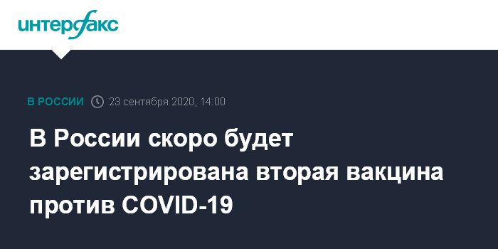 Москва. 23 сентября. INTERFAX.RU - Вторая по счету российская вакцина от коронавируса получит регистрацию в ближайшее время, сообщил президент РФ Владимир Путин.