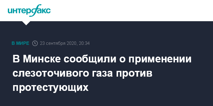 Москва. 23 сентября. INTERFAX.RU - Сотрудники правоохранительных органов в среду применили слезоточивый газ и вновь задействовали водометы для разгона участников несанкционированного протеста против инаугурации Александра Лукашенко в центре Минска.