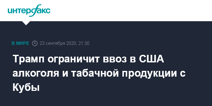 Трамп ограничит ввоз в США алкоголя и табачной продукции с Кубы