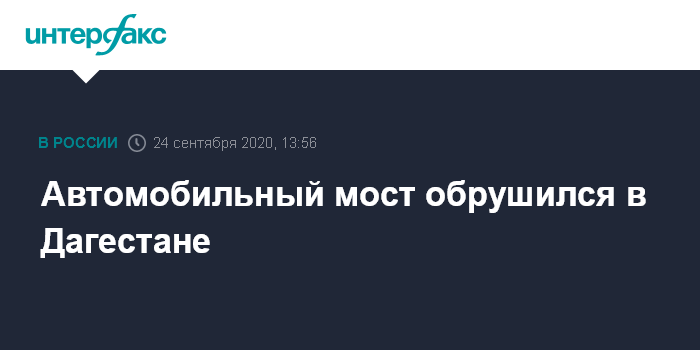 Москва. 24 сентября. INTERFAX.RU - Дорожники в Буйнакском районе Дагестана оцепили мост, который обрушился в четверг, движение автотранспорта по нему остановлено.