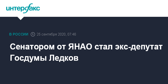 Ранее сообщалось, что Ледков досрочно сложил полномочия депутата Госдумы РФ в связи с избранием в Заксобрание ЯНАО. Предполагалось, что Ледков перейдет в Совет Федерации представлять Ямало-Ненецкий автономный округ.