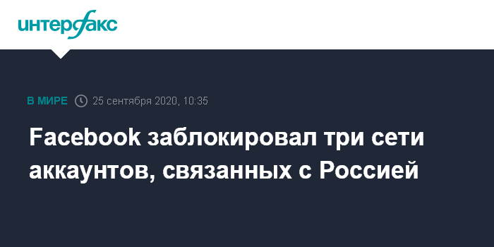Москва. 25 сентября. INTERFAX.RU - Facebook объявила об удалении трех сетей аккаунтов в принадлежащих ей соцсетях за нарушение политики американской компании в отношении иностранного или правительственного вмешательства, об этом сообщается на сайте Facebook.