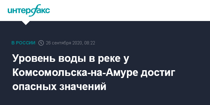 Москва. 26 сентября. INTERFAX.RU - Уровень воды в реке Амур у Комсомольска-на-Амуре превысил 6,5 метров, подтоплены подвалы жилых домов и детских садов, сообщает пресс-служба правительства Хабаровского края.
