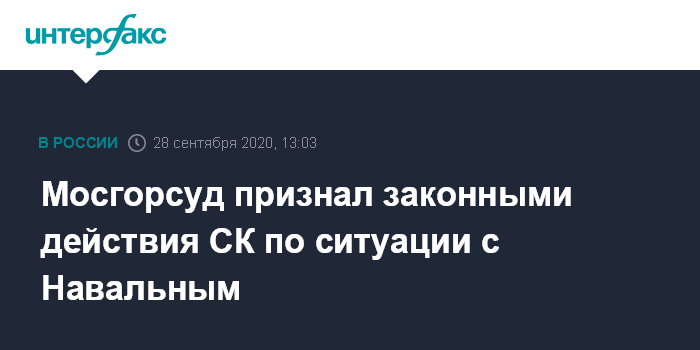 Москва. 28 сентября. INTERFAX.RU - Мосгорсуд отклонил апелляционную жалобу Фонда борьбы с коррупцией (ФБК) на решение Басманного суда, который 4 сентября отказался удовлетворить жалобу ФБК на бездействие следствия. Фонд еще в августе подал в СК жалобу об отравлении Алексея Навального и потребовал возбудить уголовное дело.