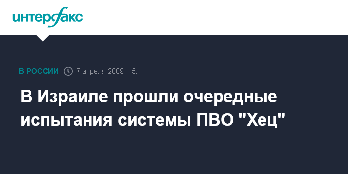 Израильское радио в свою очередь сообщило, что речь идет о 16-м испытании системы ПВО "Хец", которая разрабатывалась специально для перехвата ракет со стороны Ирана и Сирии.