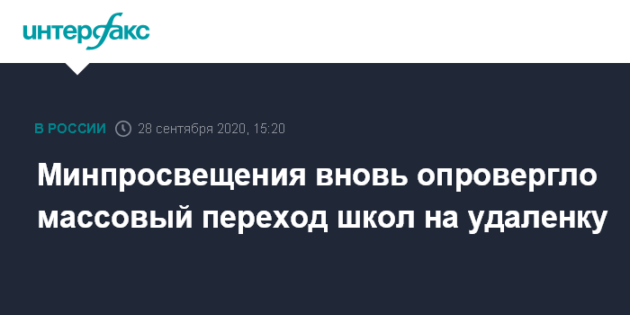 "Ситуация с закрытием школ на карантин в регионах находится под пристальным контролем, о массовом переходе на дистанционное обучение, по аналогии с весенней ситуацией, речи не идет", - сообщили журналистам в пресс-службе ведомства.