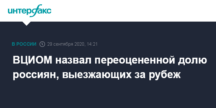 Москва. 29 сентября. INTERFAX.RU - Около 22% россиян в течение последних пяти лет хотя бы один раз выезжали на отдых за рубеж, в другие регионы России за тот же период - не менее 50%, сообщил директор по работе с органами государственной власти ВЦИОМ Кирилл Родин; число выезжающих за границу граждан РФ он назвал переоцененным.