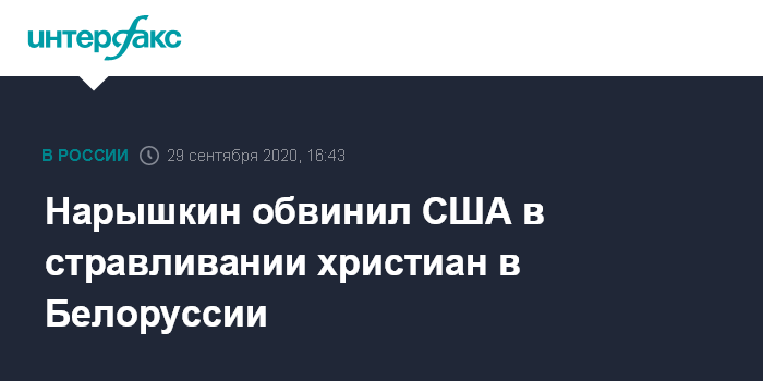 Нарышкин обвинил США в стравливании христиан в Белоруссии