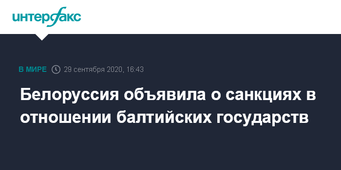 Москва. 29 сентября. INTERFAX.RU - Министерство иностранных дел Белоруссии заявило о введении государством санкций в отношении балтийских государств с 29 сентября.