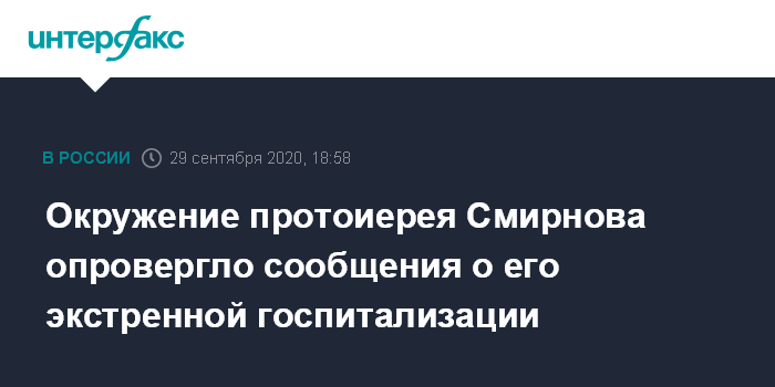 Окружение протоиерея Смирнова опровергло сообщения о его экстренной госпитализации