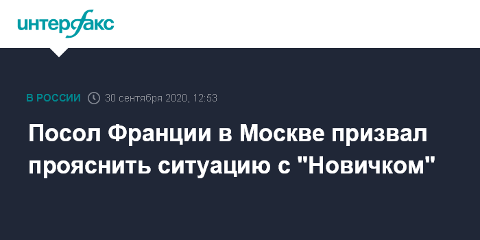 Посол Франции в Москве призвал прояснить ситуацию с "Новичком"