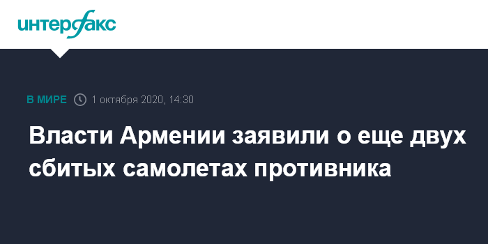 Власти Армении заявили о еще двух сбитых самолетах противника