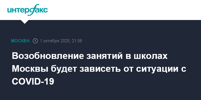 Возобновление занятий в школах Москвы будет зависеть от ситуации с COVID-19
