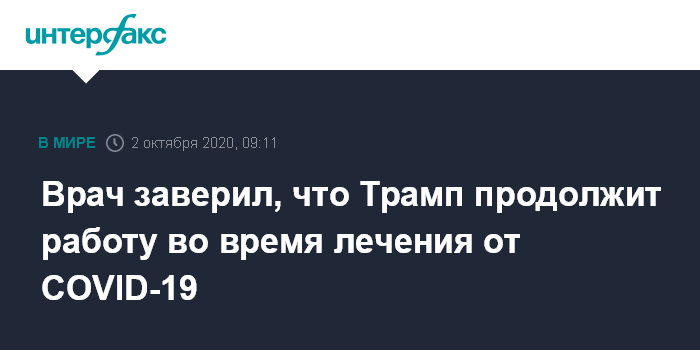 Врач заверил, что Трамп продолжит работу во время лечения от COVID-19