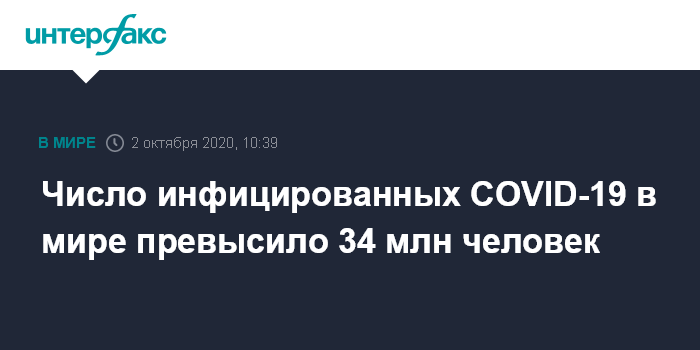 Число инфицированных COVID-19 в мире превысило 34 млн человек
