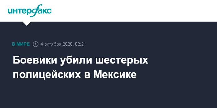 Москва. 4 октября. INTERFAX.RU - Неизвестные напали на полицейский конвой в Мексике и убили шестерых полицейских, сообщило в субботу агентство Associated Press.
