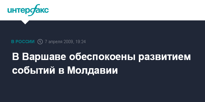 Варшава. 7 апреля. ИНТЕРФАКС-ЦЕНТРАЛЬНАЯ ЕВРОПА - Министерство иностранных дел Польши выражает обеспокоенность в связи со столкновениями, произошедшими во время акций протеста сторонников оппозиции в Кишиневе.