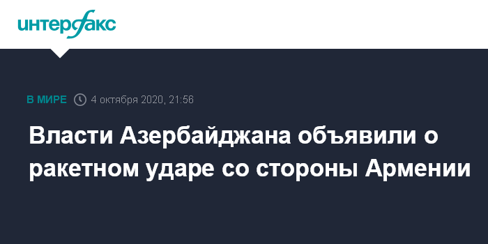 Власти Азербайджана объявили о ракетном ударе со стороны Армении