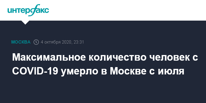 Максимальное количество человек с COVID-19 умерло в Москве с июля