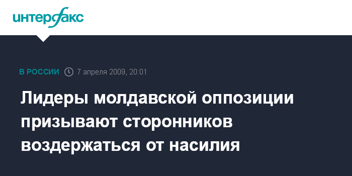 Кишинев. 7 апреля. INTERFAX.RU - Лидеры трех оппозиционных партий Молдавии призвали манифестантов на центральной площади Кишинева не допускать насилия, несмотря на то, что переговоры с властями пока не дали окончательных результатов.