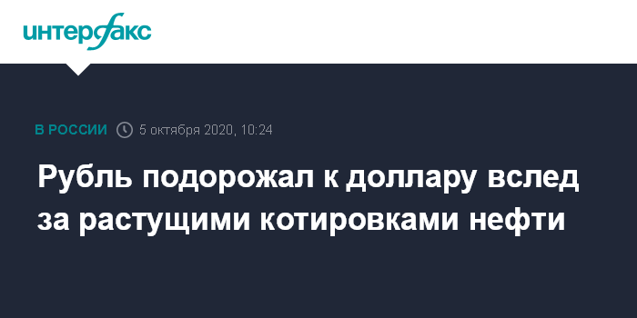 Как отмечают эксперты "Интерфакс-ЦЭА", рубль укрепляется к доллару и евро на старте торгов благодаря позитивной динамике внешних рынков и растущей нефти. Инвесторы увеличили аппетит к риску на ожиданиях нового стимулирования экономики США и улучшения здоровья американского президента Дональда Трампа.