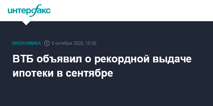 ВТБ объявил о рекордной выдаче ипотеки в сентябре