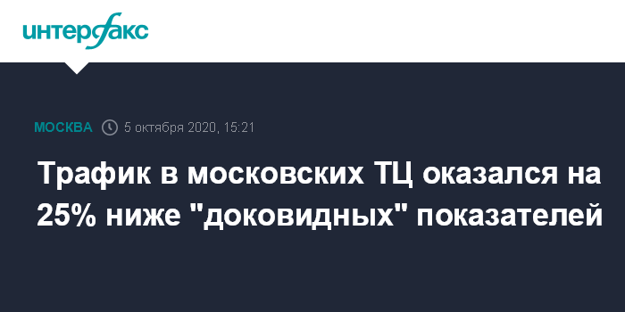 Трафик в московских ТЦ оказался на 25% ниже "доковидных" показателей