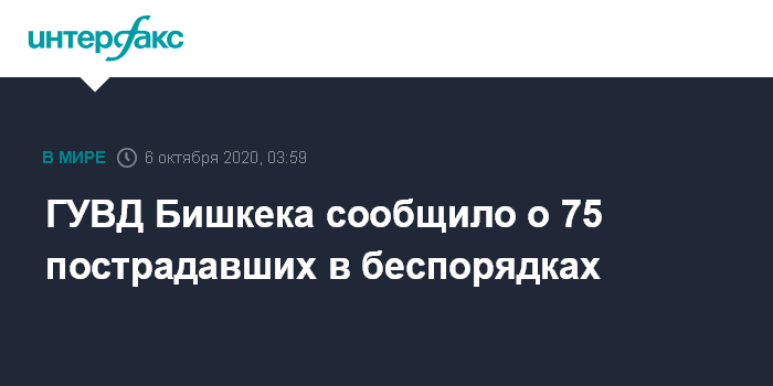 Москва. 6 октября. INTERFAX.RU - После беспорядков в центре Бишкека (Киргизия) госпитализировано 75 человек, 46 из них - сотрудники правоохранительных органов, сообщает во вторник пресс-служба столичного ГУВД.