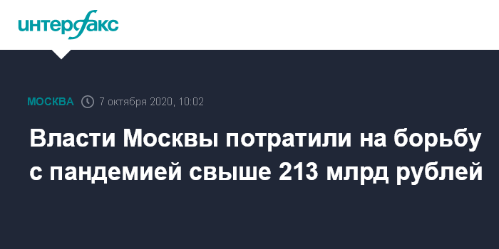 Власти Москвы потратили на борьбу с пандемией свыше 213 млрд рублей
