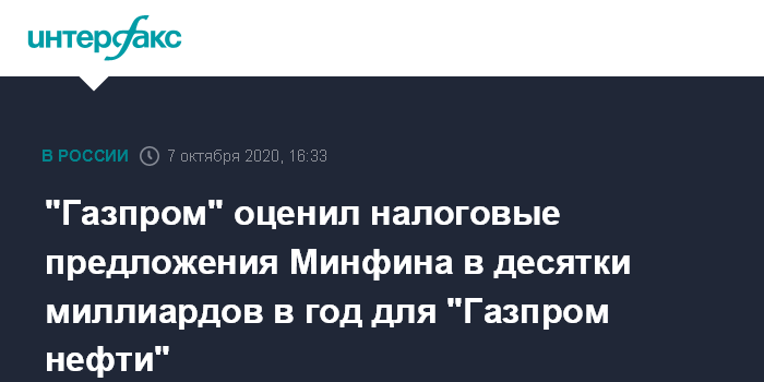"Газпром" оценил налоговые предложения Минфина в десятки миллиардов в год для "Газпром нефти"