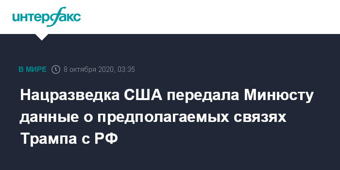 "По моему указанию управление директора Национальной разведки предоставило почти 1 тыс. страниц материалов в Министерство юстиции в ответ на запрос мистера Дарема (прокурор Джон Дарем - ИФ) о документах, включая новую партию, которую юристы Министерства юстиции теперь могут немедленно просмотреть", - заявил Рэтклифф порталу Axios.