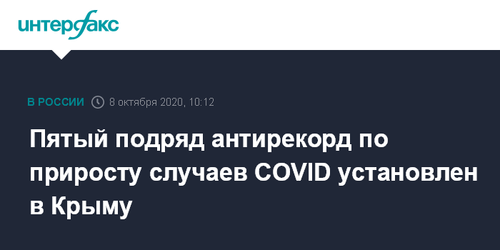 Москва. 8 октября. INTERFAX.RU - Количество выявленных за сутки в Крыму случаев заражения коронавирусом впервые превысило 120.