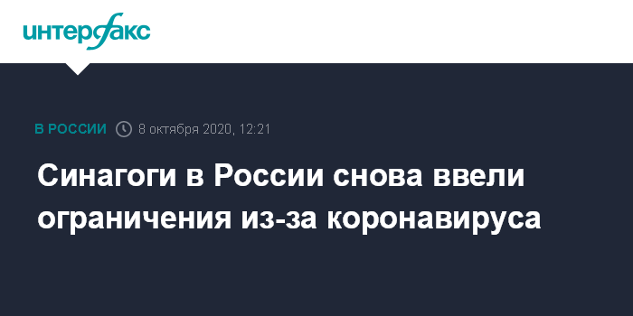 Синагоги в России снова ввели ограничения из-за коронавируса