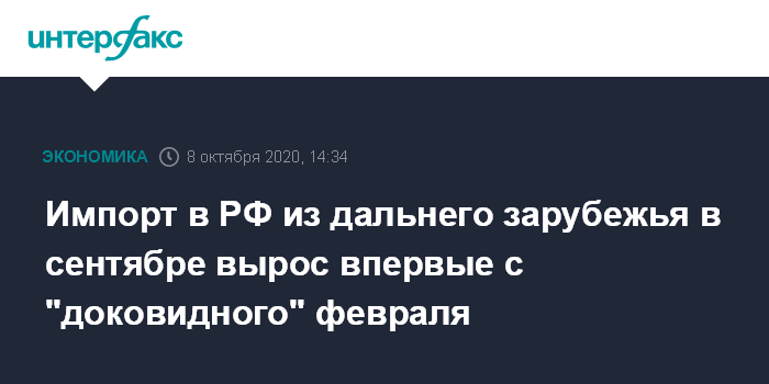 При этом в сентябре импорт из стран дальнего зарубежья составил $17,899 млрд, увеличившись на 0,3% по сравнению с сентябрем 2019 года (по сравнению с августом 2020 года вырос на 5,9%).