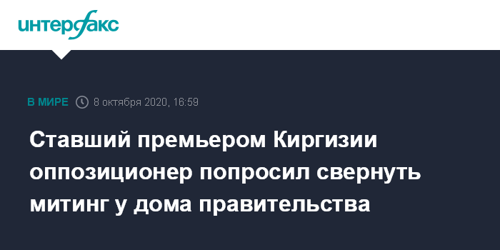 Москва. 8 октября. INTERFAX.RU - Киргизский политик Садыр Жапаров, кандидатуру которого на пост премьер-министра поддержал парламент, призвал сторонников прекратить митинг у дома правительства и разойтись.