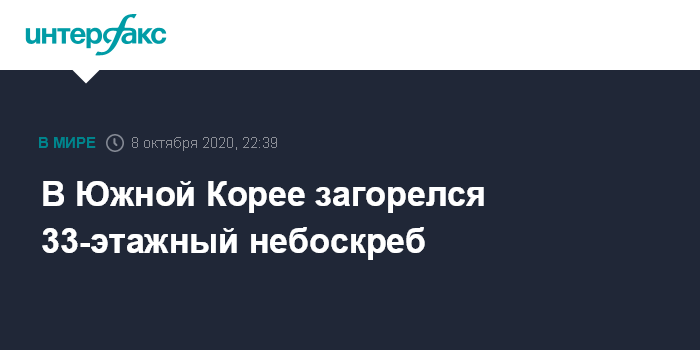Москва. 8 октября. INTERFAX.RU - В южнокорейском Ульсане загорелся 33-этажный небоскреб, сообщает в четверг BBC.