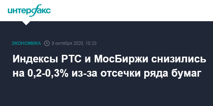 Индексы РТС и МосБиржи снизились на 0,2-0,3% из-за отсечки ряда бумаг