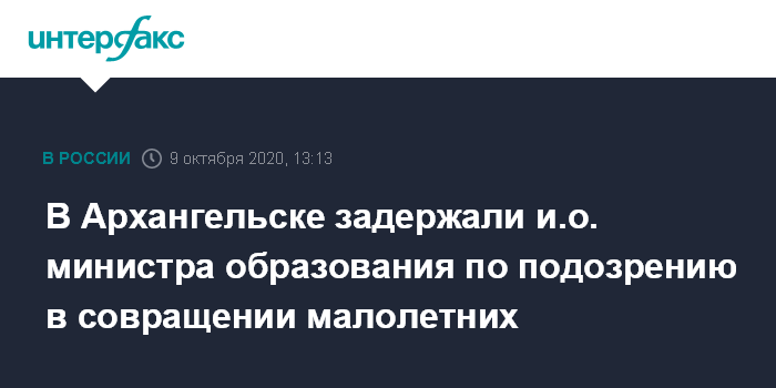 В Архангельске задержали и.о. министра образования по подозрению в совращении малолетних