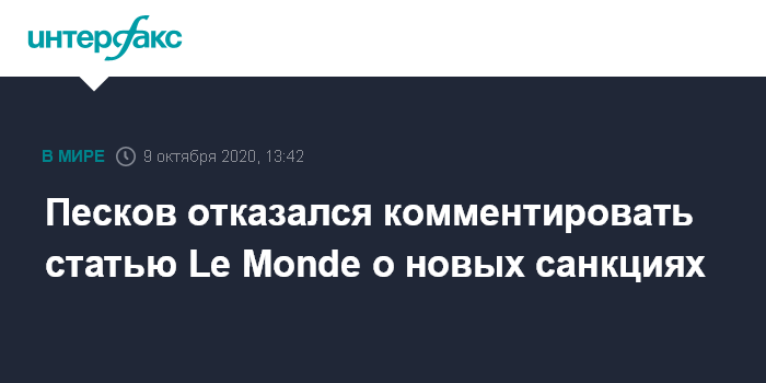 Песков отказался комментировать статью Le Monde о новых санкциях